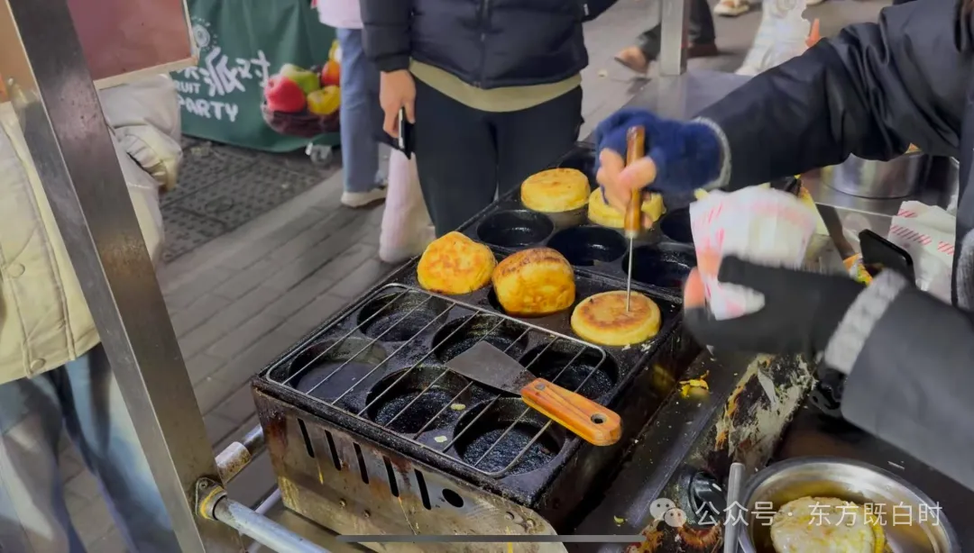 所以她得一直不停的倒油,填馅,翻面, 勉强把平均等待时间控制到2~3分钟.